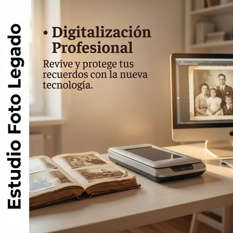 Digitalización profesional a 600 ppp desde 0,45 € por foto (0,35 € en grandes volúmenes).