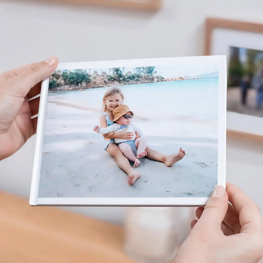 La tapa dura personalizada se diseña con una de tus fotografías favoritas, convirtiendo cada libro en una pieza única y personal. Durante el proceso de digitalización, nos pondremos en contacto contigo para seleccionar las mejores imágenes tanto para la portada como para el interior del álbum, asegurando una composición equilibrada y un resultado visualmente armonioso.